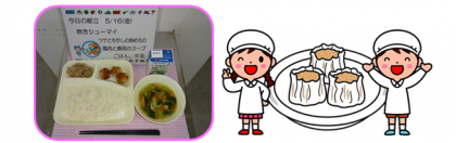 今日の給食では、冷凍加工されたシューマイをスチームコンベクションオーブンで蒸し焼きにしています。
