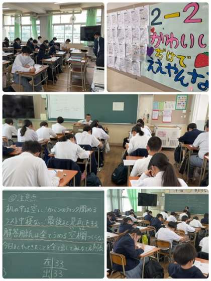 テスト後は4限目に30分の学活を行い、給食を食べて下校としました。