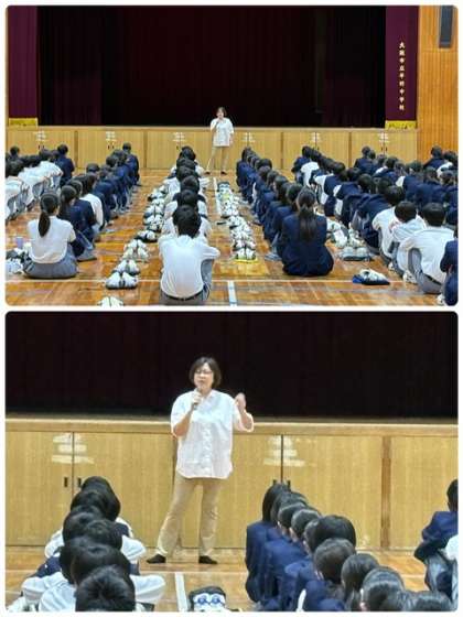 学年主任から、学年での事例を振り返り、生徒も大人も自分や周囲の言動が人を傷つけていないかを考える機会となりました。