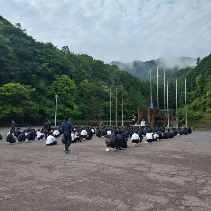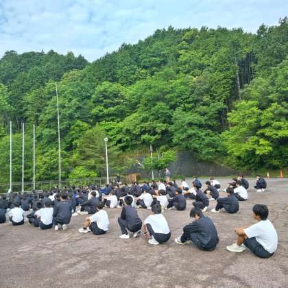 一泊移住 朝の集い 公開日 2025/06/04 更新日 2025/06/04 出来事 おはようございます。 昨日の雨はすっかりやみ、朝から青空のもと、朝の集いが行われています。 貝塚の大自然の中、ウグイスの「ホーホケキョ」という鳴き声が至るところから聞こえています。 この後、朝食を食べ、待ちに待ったカレー作りが始まります。