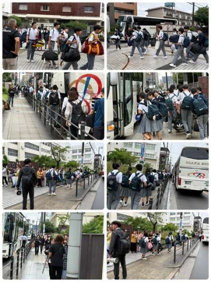 ●修学旅行が始まります。体育館で時間通りに集合し、出発式を行いました。