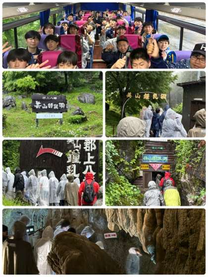 修学旅行 4 公開日 2025/06/10 更新日 2025/06/10 出来事 30分程遅れて郡上八幡の旧西和良小学校に到着。 選択体験が開始しました。 雨天のため、マウンテンバイクのみ予定変更して、鍾乳洞見学と切り絵体験となりました。