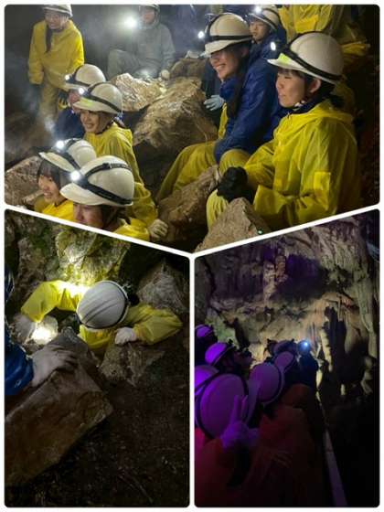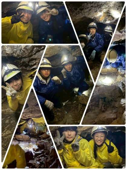 修学旅行 5 公開日 2025/06/10 更新日 2025/06/10 出来事 選択体験 ケイビング ケイビングとは洞窟探検で観光用の鍾乳洞では入れない狭い洞窟を探検します。 ヘルメット、照明を装備しガイドさんと一緒でなければ入れません。 一人だと無理かも知れませんが、みんなで助け合って進んでいます。