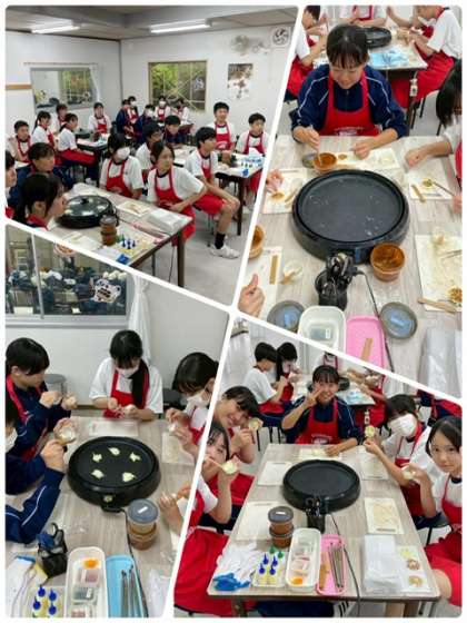 選択体験 食品サンプルづくり ケイビングのあと、食品サンプルでお好み焼きを作りました。