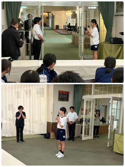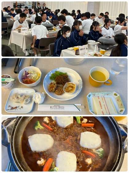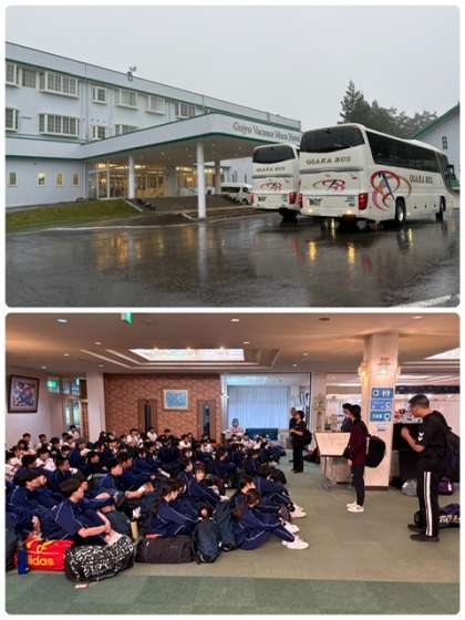 予定より遅れて、ホテル到着。 入室してすぐに、入館式を行い夕食をいただきました。