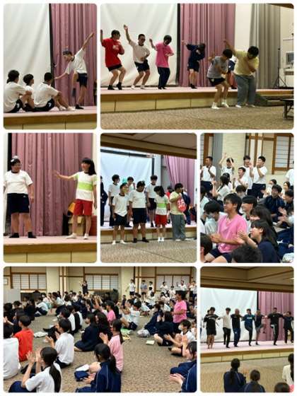 修学旅行 13 公開日 2025/06/11 更新日 2025/06/11 出来事 学年レクリエーション 演出者は堂々と、観る側も暖かい拍手を送り、楽しい時間を過ごしました。 先生方のサプライズもあり、エンドロールには熱い思いを感じました。