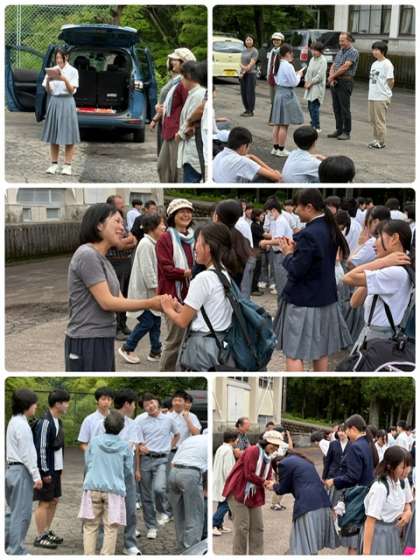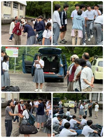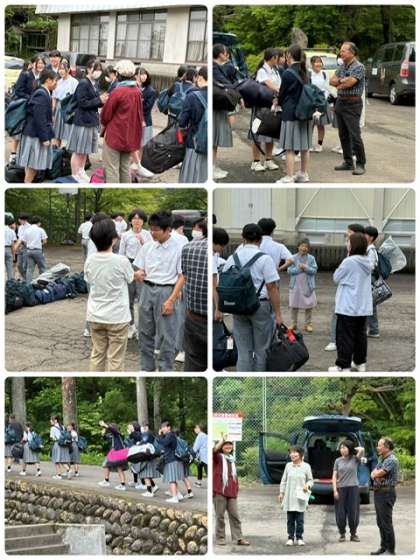 修学旅行 22 公開日 2025/06/12 更新日 2025/06/12 出来事 3日目朝 各民泊先から車で集合場所に集合し、 4か所に分かれて退村式をしました。 お世話になった民泊先の方々とのお別れです。