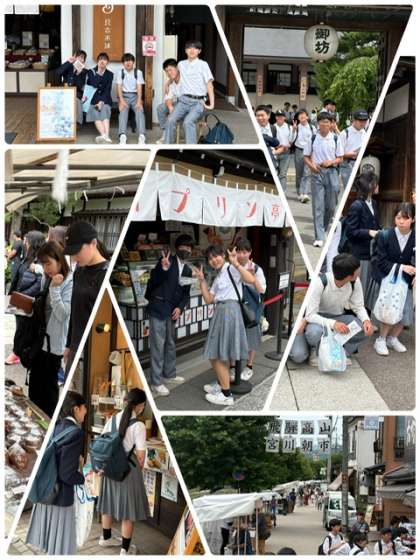 10時00分 高山に到着し、班別自由散策。土産購入や食べ歩きを楽しんでいます。