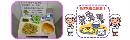 今年の近畿地方では6月9日に梅雨入りの発表がありました。この時期になると、暑さに加えて湿度も高まり、蒸し暑い日が続きます。私たちにとっては、あまり気持ちの良くない環境であっても、細菌たちにとっては最も良い環境となり、この時期は一年間で最も細菌性の食中毒が多くなります。おもな症状は、嘔吐、下痢、発熱などですが、場合によっては命にかかわることもあります。給食室でも細心の注意を払っていますが、ご家庭においても十分ご注意ください。