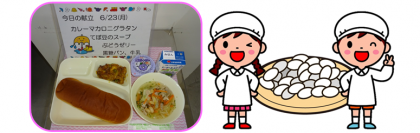 炭水化物やたんぱく質、鉄、カルシウムなどを含むほかビタミンB群、食物繊維なども多く含んでいます。今日の給食では、スープの具として使用しています。