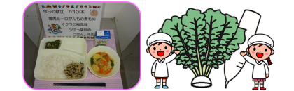 今日の給食では、ツナ缶とともに油で炒めて料理酒、しょうゆで味付けし、手作りのふりかけとして使用しています。