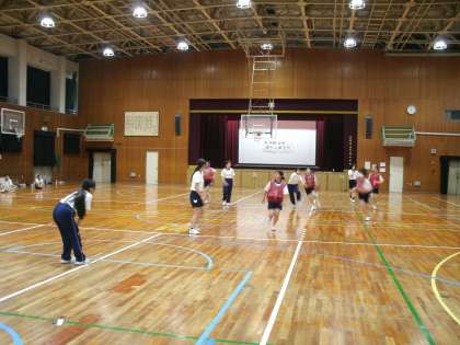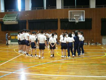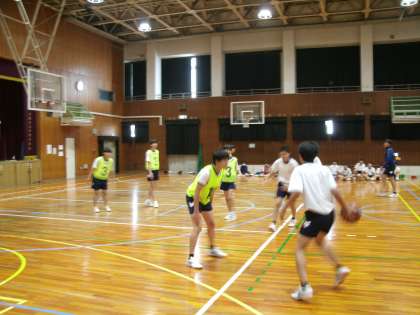 体育館でバスケットボール、運動場でサッカーを行いました。