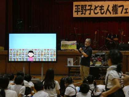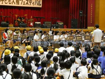 平野子ども人権フェスティバル 1 公開日 2025/08/06 更新日 2025/08/06 出来事 8月6日(水) 本日午後からは平野北中学校で「平野子ども人権フェスティバル」が開催されました。 平野5校の取り組みとして平野中学校・平野北中学校の生徒会・吹奏楽部・軽音楽部による平和に関するクイズや演奏と平野図書館の方の本の紹介なども行われ、小・中学生や保護者・教職員が約300名集いました。