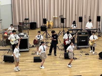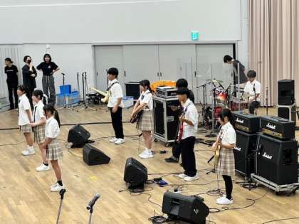 軽音楽部 公開日 2025/08/09 更新日 2025/08/09 出来事 8月9日(土) 本日、大阪芸術大学のサウンドクリニックに本校軽音楽部が参加しました。 芸大の先生方から貴重なアドバイスをいただき、8月20日のスニーカーエイジに向けてさらに練習に励んでいます。