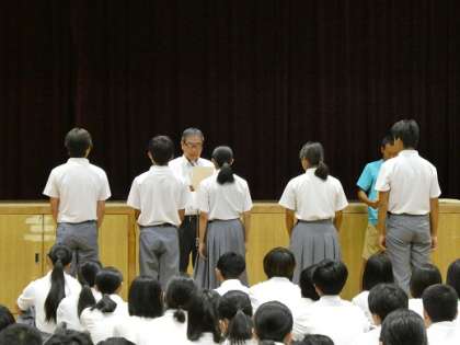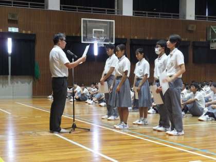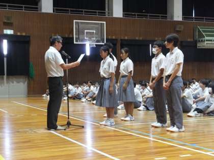 全校集会では、先週紹介できなかった部活動の表彰が行われました。