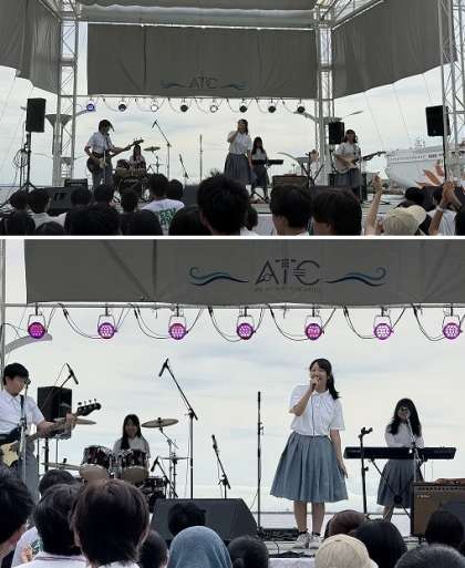 軽音楽部 大阪南港ATCでライブ! 公開日 2025/09/17 更新日 2025/09/17 出来事 9月13日(土) 大阪南港ATC海のステージで開催されたチャリティーコンサートSing for futureに、平中軽音楽部が出演しました! 3年生バンドが「不可抗力(Vaundy)」2年生バンドが「Lovers(sumika)」で会場を盛り上げました!