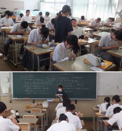 ●2年生美術 篆刻(てんこく)と言い、オリジナルの印章を作成しています。