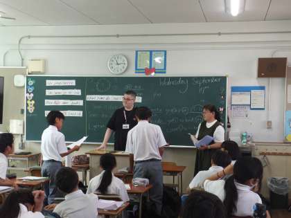 ●1年生英語 C-netの先生と1日の生活を、英語で表現する学習をしています。