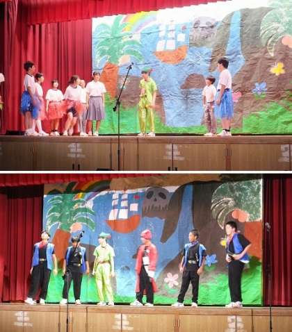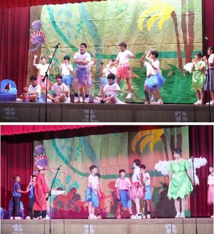 文化発表会 舞台発表 5 公開日 2025/09/28 更新日 2025/09/28 出来事 午前最後の舞台発表は2年生による学年劇『ピーターパン〜自分たちが主人公〜』です。 劇中には『きみもとべるよ!』を観覧席を使って全体での歌声も披露してくれました。 そして笑いもあり、何より中学生にとって考えさせられる内容の素晴らしい劇でした。