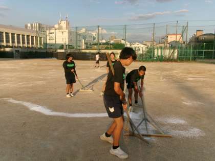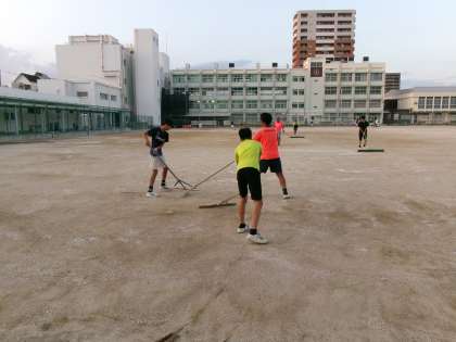 グランドを使用する部活動以外にも、女子バスケットボール部の生徒や先生も手伝ってくれたおかげで早く終わりました。ありがとうございました。
