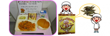 「カレーフィッシュ」は、カルシウムを摂取しやすい小魚を食べやすく加工した製品です。原材料としては、国産のかたくちいわしの煮干しを使用し、食塩、水あめ、砂糖、香辛料などでの味付けになっています。カレー風味の味付けになっていますので、従来から使用している「ミニフィッシュ」の味違い版のような製品です。