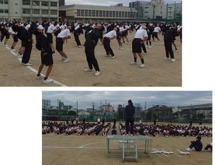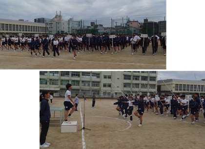 体育大会全体練習 公開日 2025/10/21 更新日 2025/10/21 出来事 10月21日(火) 本日6限、体育大会の全体練習が行われました。 入場、開会式、校歌、体操など3学年揃っての練習です。体育大会までは、全体練習や学年練習も入り、時間割の変更とともに体操服が必要になる日にちが多くなりますので、ご注意ください。