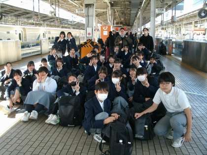 吹奏楽部 全国大会 公開日 2025/11/23 更新日 2025/11/23 出来事 11月16日(日) 千葉県で行われた「日本学校合奏コンクール全国グランドコンテスト」に吹奏楽部が出場しました。 前日から新幹線を利用して、千葉に向かいインフルエンザなどの予防にも注意して、大会に臨みました。