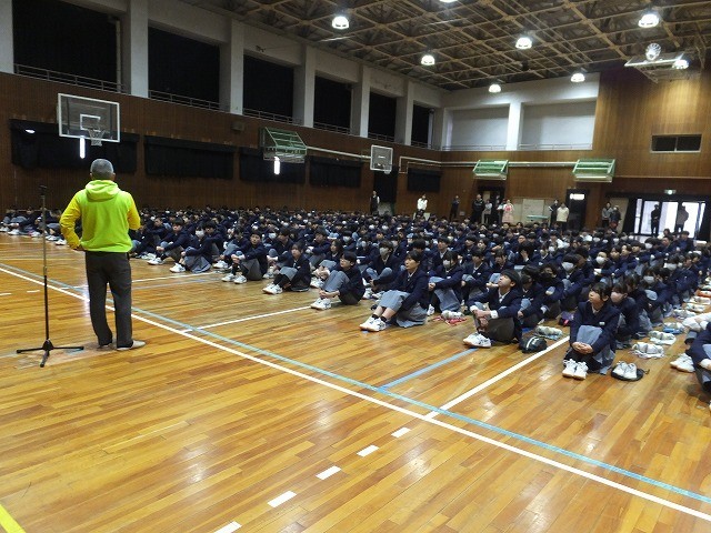 吹奏楽部のアンサンブルコンテストの表彰の後、学校長・生徒指導主事から 2学期の振り返りや冬休みの生活面についてお話がありました。