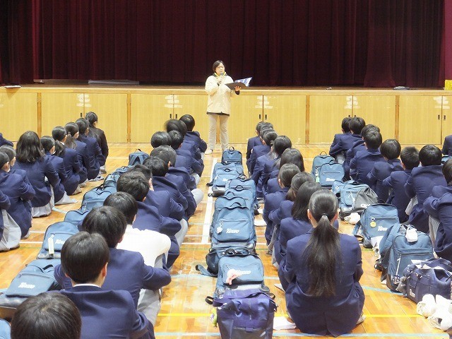 ●3年生 6時間目に体育館で私立高校入試の事前指導を行いました。受験校に分かれて、交通経路の確認などがおこなわれました。