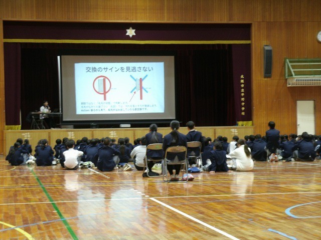 本校では毎年、1年生を対象に開催し、今回も学校歯科校医の先生と歯科衛生士の方を講師にお招きし、虫歯の原因や平野中学校の生徒の虫歯状況や歯磨きの習慣についての報告をしていただきました。