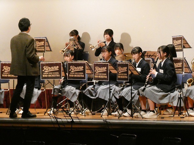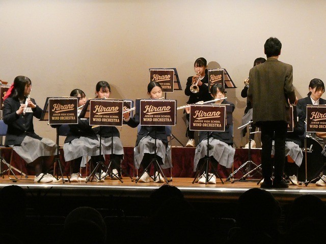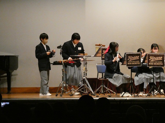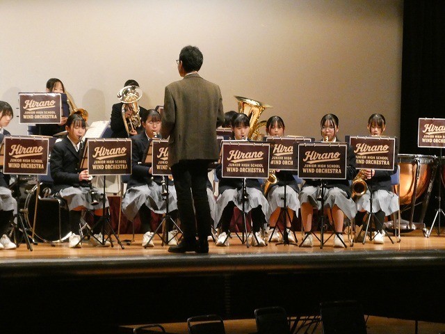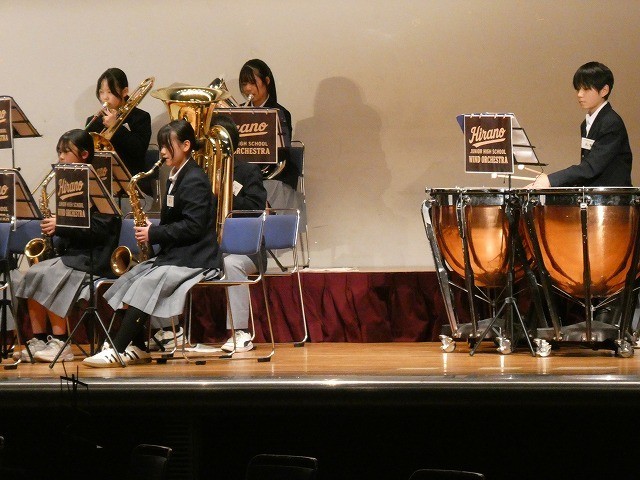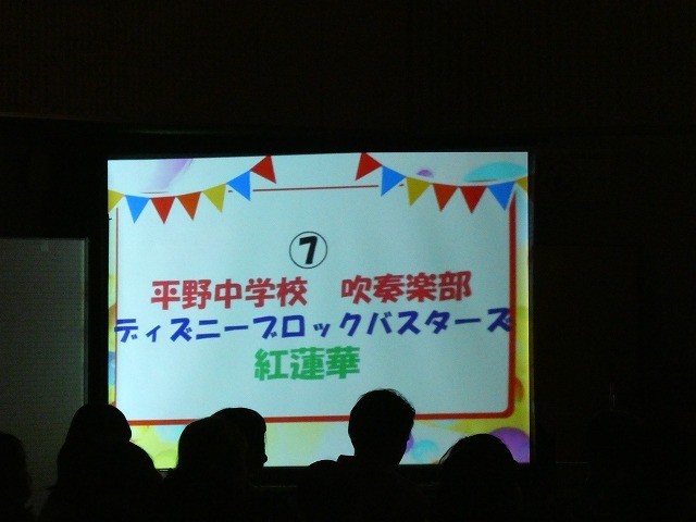 休憩を挟んで7番目に平野中学校の吹奏楽部が出場し、2曲の演目を披露しました。