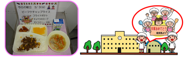 学校給食は大量に調理するため、皆さんそれぞれの要望にお応えすることはできなかったとは思いますが、皆さんの思い出の一つになればと思っています。