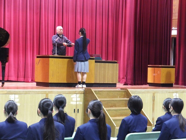 その後、2時間目から3年生は体育館に入って、初めて証書の授与を1人ずつ全員が練習しました。