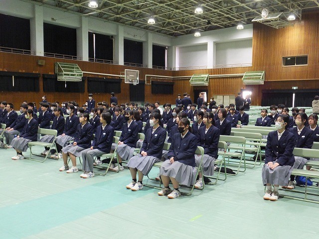 ●2年生が朝から体育館で卒業式の練習のため、シートを敷いて、椅子を並べるなどの準備をしてくれました。