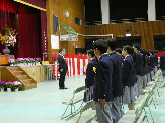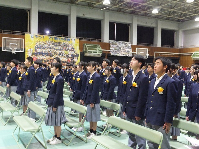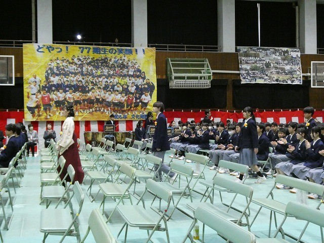 ●吹奏楽部の演奏と大きな拍手のなか、卒業生が入場しました。