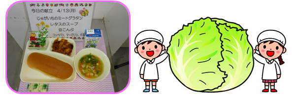 今日の給食では、長崎県産のレタスをスープの具として使用しています。