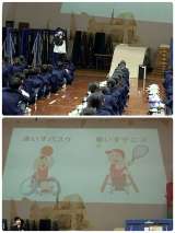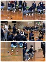 ●1年生が障がい者理解の取り組みで、パラリンピックの正式種目でもあるボッチャ体験...
