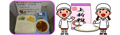 献立名 ・ハヤシライス ・キャベツのひじきドレッシング ・白桃(...