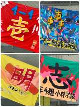 学級旗 1年生は 1文字 2年生は 2文字 3年生は 4文字の言葉を入れてます。
