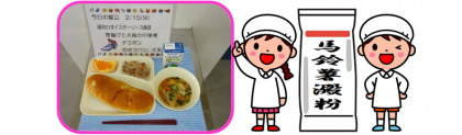 献立名 ・押麦のグラタン ・スープ ・いよかん ・コッペ...