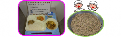 献立名 ・鶏ごぼうご飯(きざみのり) ・焼きれんこん ・みそ汁 ...