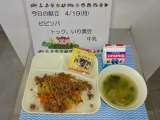 4月23日(金) 献立名 ・カレースープスパゲッティ ・キャベツのピクル...