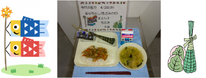 献立名 ・金平ちらし(きざみのり) ・すまし汁 ・ちまき ...