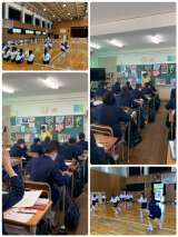 1年生の体育は大縄跳び、テンポよくできていました。3年生の美術では、遠近法を用い...