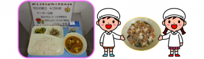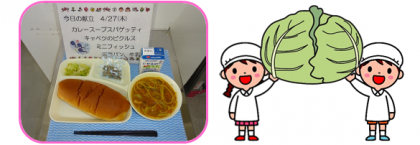 献立名 ・カレースープスパゲッティ ・キャベツのピクルス ・ミニ...