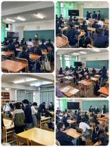 3年生が修学旅行に向けた取り組みを行っています。 バス座席や高山市内判別散策の役...