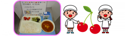 献立名 ・ハヤシライス ・ミックス海藻のサラダ ・さくらんぼ ...