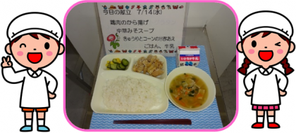 7月14日(水) 献立名 ・鶏肉のから揚げ ・中華みそスープ ・...