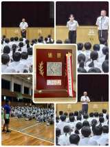 始業式での夏休み中の部活動の表彰の様子です。 たくさんの表彰、おめでとうござ...