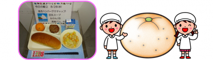 献立名 ・焼きハンバーグ(ケチャップ) ・豆乳スープ ・みかん(...